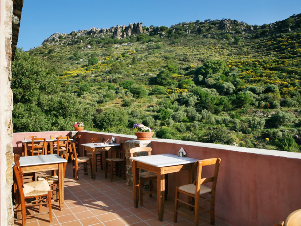 Milia Mountain Retreat & Eco Hotel, up in the mountains of western Crete in the Chania region, has endless hiking paths, wooded hillsides, and is far away from it all. The alternative, ecologically sound collection of stone buildings with matching taverna and natural foods - somehow just staying here should prove meaningful.