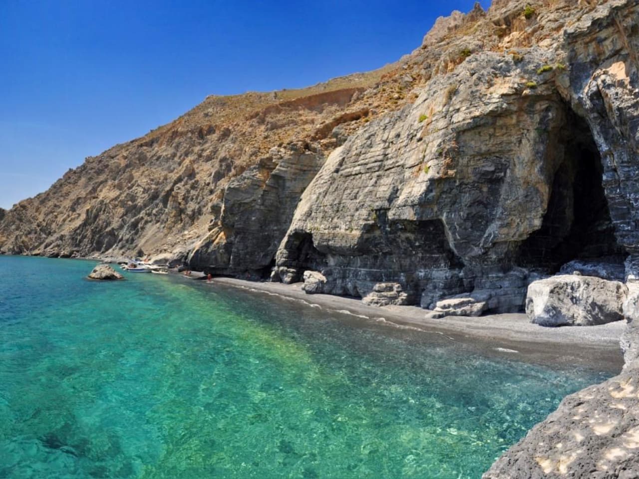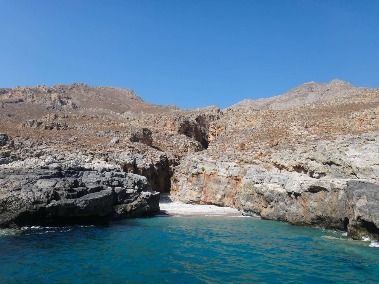 - Don't miss to visit the beach of Agiofaraggo (19km) at the exit of the homonym gorge. To get there you must either cross the gorge, by easy hiking of about 30-50’, or catch a boat from Matala, Agia Galini, or Kali Limenes. We definitely recommend the first option, as the route within the vertical walls of the gorge is breathtaking. On the way, you will see the large caves where some hermits still live and the chapel of St. Anthony, with a well outside.