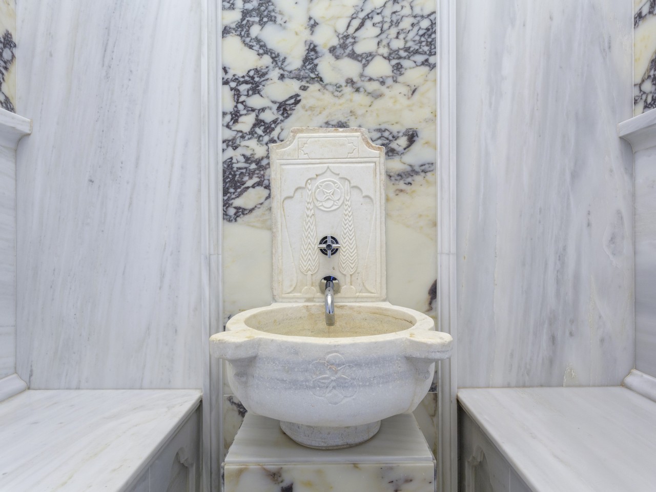 - Ottoman Suite (up to 3 people - 65m2): Evocative of the Ottoman heritage of the surrounding city, this opulent suite features an authentic marble Hamam, exclusively for residents’ use. Smooth contemporary lines ensure the utmost care in detail. The bedroom and the comfortable living area are equipped with all modern amenities. The bathroom is refined with Greek marble and features a separate steam shower and Jacuzzi bathtub.