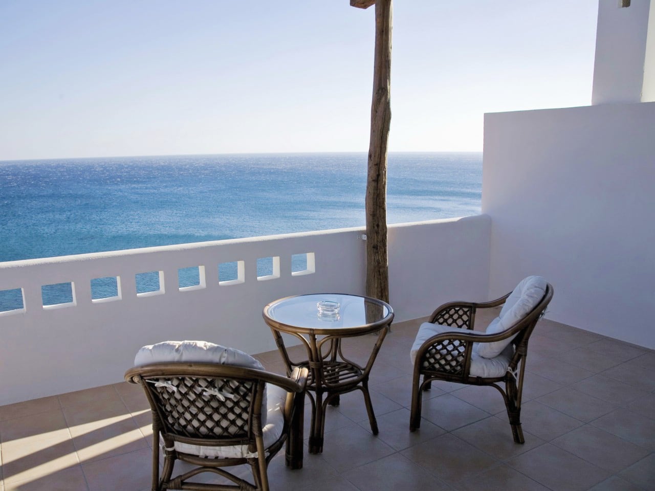 - Dining: Complete kitchens (only at Apartments and Kitchenette at Studios) invite preparation of culinary delights. Apartments fully equipped kitchens are spacious and provide you with utensils and basic ingredients (herbs, olive oil, bin bags, sponges, etc are provided). A shaded of bamboo veranda ideal for al fresco meals with amazing sea views. Don't forget to stock up as you pass through Spili Village.