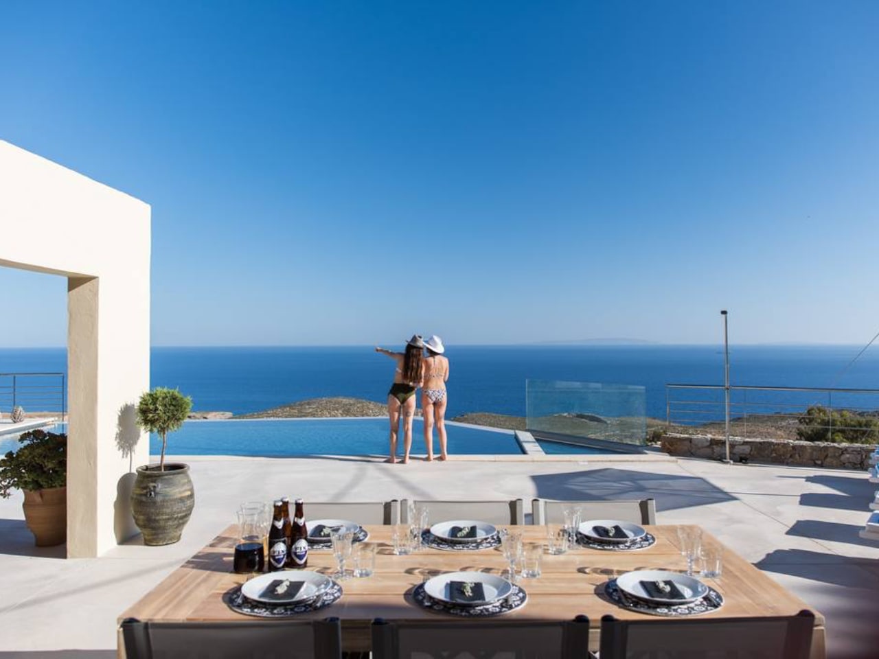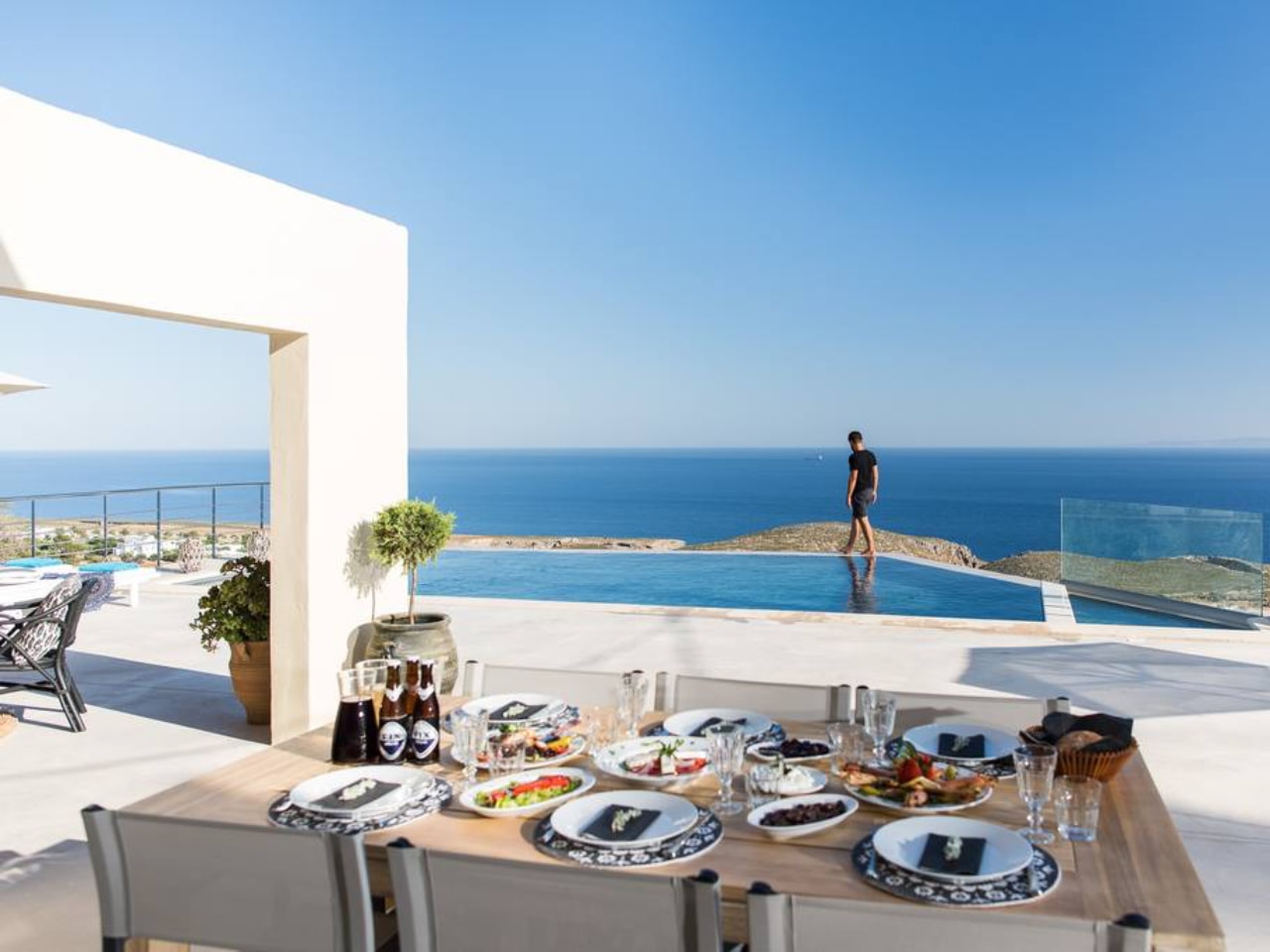Villa Thetis can accommodate up to 8 guests and features 3 spacious bedrooms (1 double and 2 twins) and three baths (two of them en-suite), a spacious open area with living room, dining area and fully equipped kitchen, and an amazing infinity pool with children’s part.