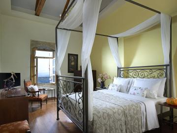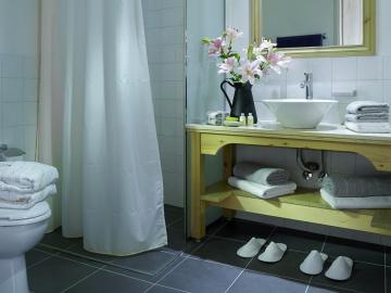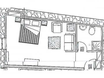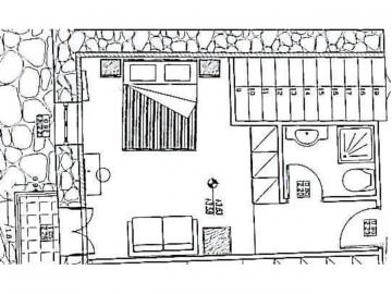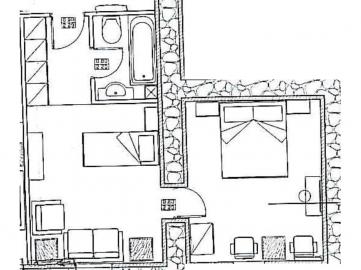 - Suite No.6 on the first floor: 35m2 up to 3 people, 1 Double Bed and 1 Extra Sofa Bed, bathroom with bathtub. Valley view.