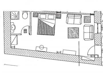3 rooms for two people and 4 rooms that take three people (these have a double bed and a sofa-bed-0.98x2.00m; one of the rooms has a partly separate bedroom, but without a closing door - the other is single-space).